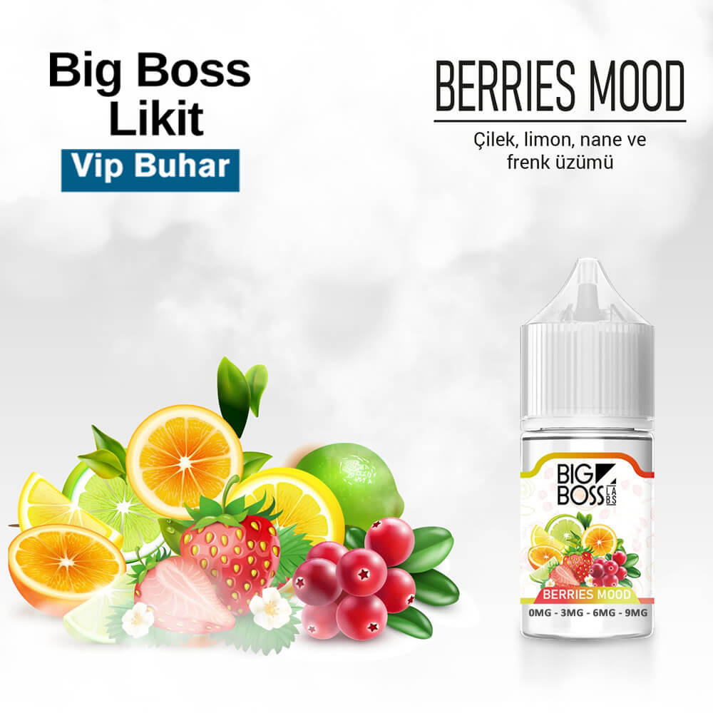 Big Boss Berries Mood Likit Big Boss’un sevilen çilek, limon ve naneli likididir. Frenk üzümü, çilek limon ve nane aromalı likit sevenlerin tercih edeceği bir likittir.