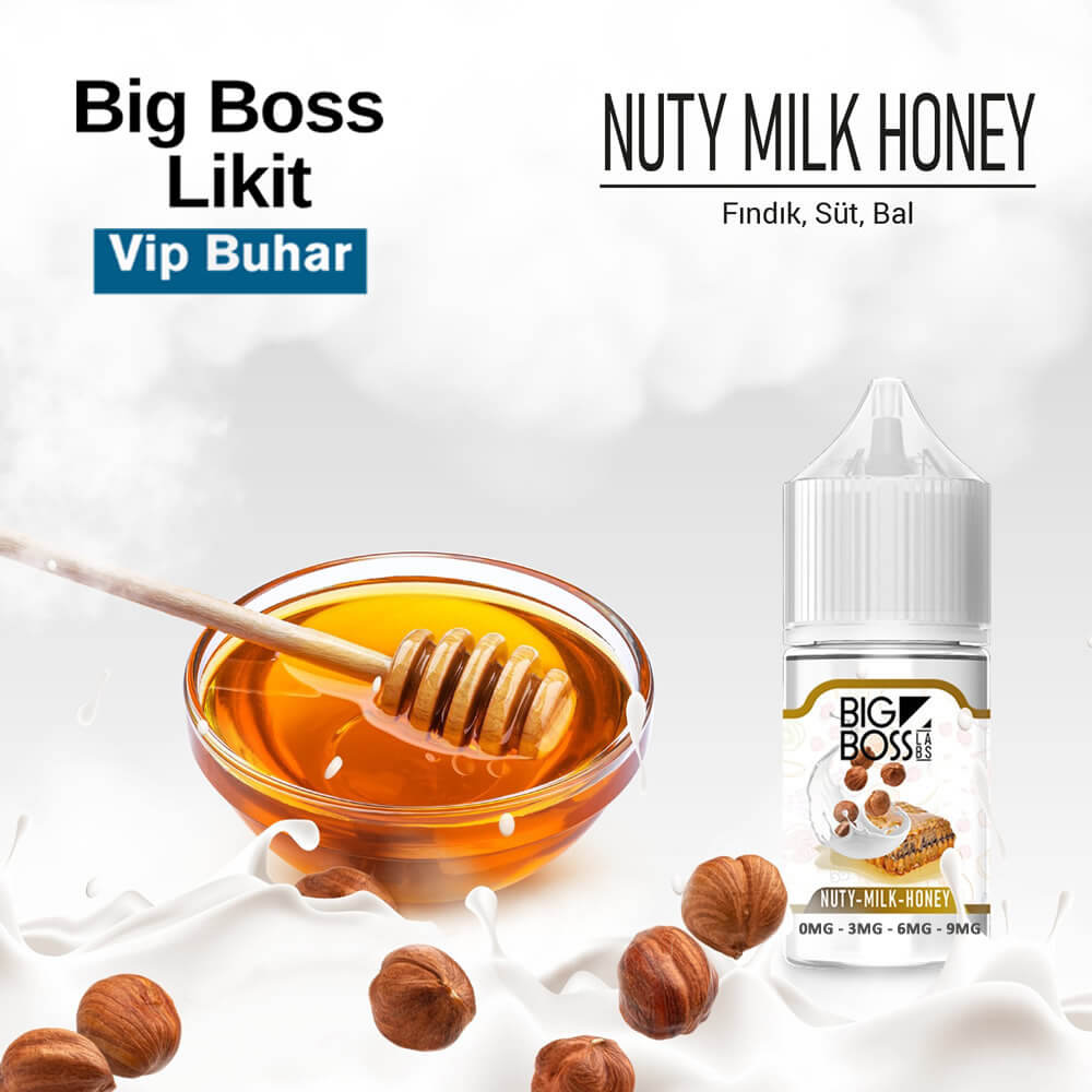 Big Boss Nuty Milk Honey Likit Big Boss’un sevilen fındıklı likittir. Fındık aromalı likit sevenlerin tercih edeceği bu likitte fındık, süt, bal aromaları mevcuttur.